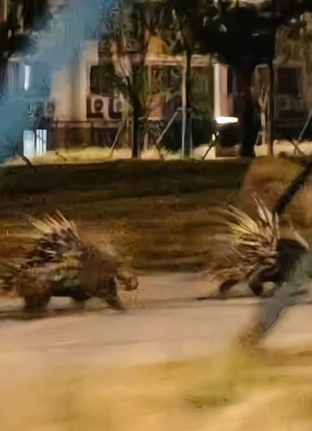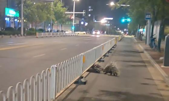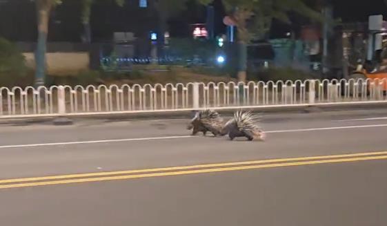 南京街头两只长满刺的豪猪夜跑,有社区工作人员称它们曾四处流窜,动物园:暂未接到有豪猪出逃消息